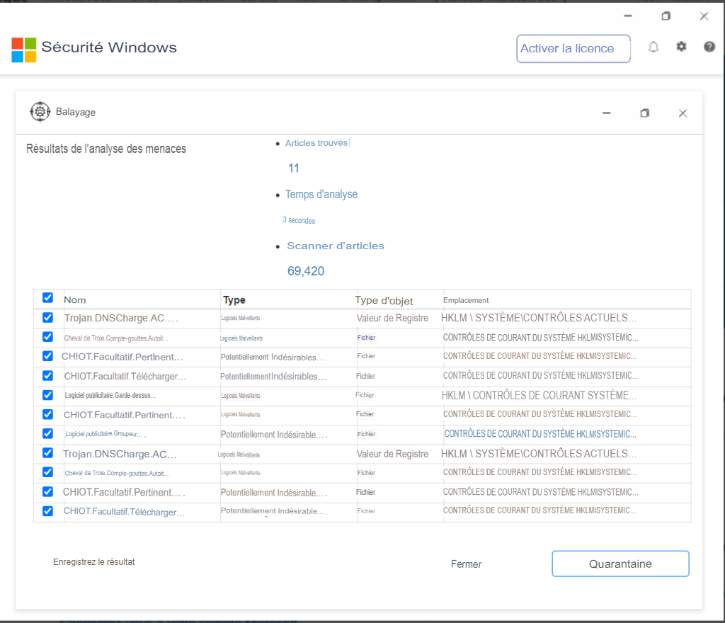 En fermant cette fenêtre, vous mettez vos informations personnelles en danger et votre inscription Windows risque d'être suspendue.